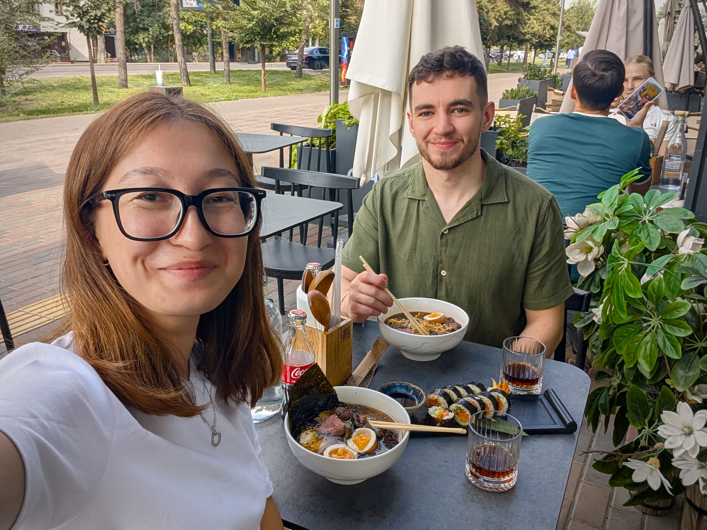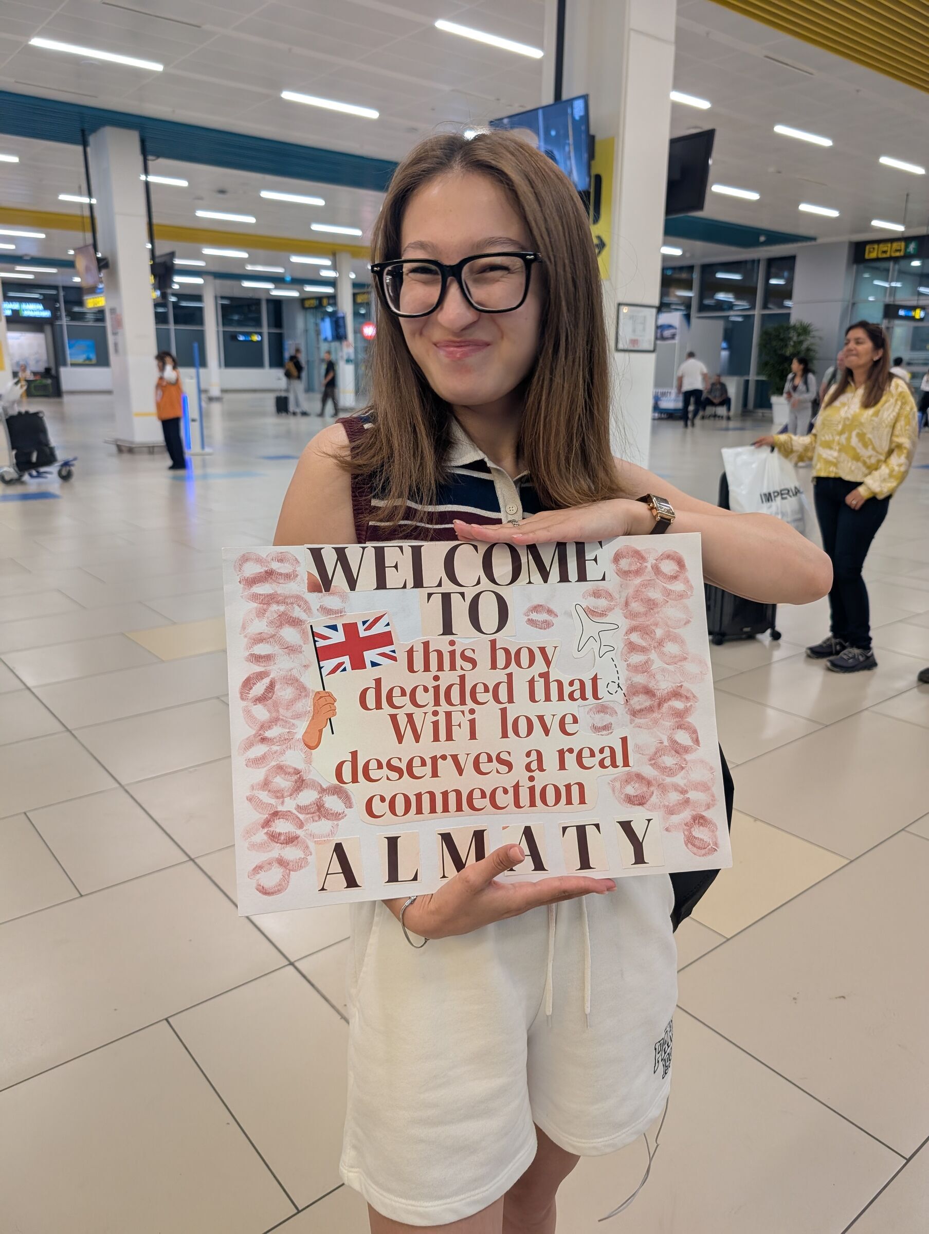 Goofy Mood After all the calls and the countdowns, there you were again. You'd been saving places to show me — you knew every one of them by heart — you gave me Kazakhstan through your eyes. The canyons, the mountains, the lake. And then Shymkent, your family, the home that made you who you are. Being welcomed in like that is something I'll never forget.